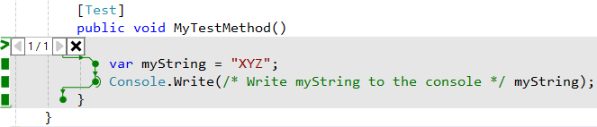 The source line in question calls a method with a local variable. The name of the variable is also shown in a comment on the line. When given this source line and the name of the variable, it isn't possible for RDI to determine where to place its data point in a way that doesn't involve some knowledge of the C# language. In this situation, the text matcher instead finds multiple matches and it gives up entirely. The data point and its value then become accessible instead by placing the mouse over the control flow marker for the line.